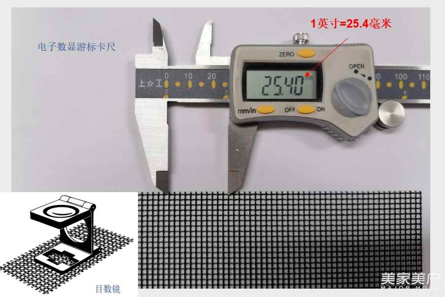 测量工具有:游标卡尺和专用目数镜(如上图)
