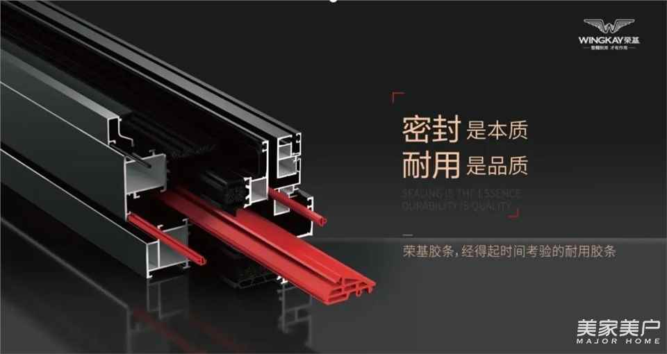 为解决胶条出现断口的“痛点”,荣基特别推出双复合穿线胶条,通过玻璃纤维线固定胶条的长度,可以有效降低胶条的拉伸变形,能够很好地解决密封胶条收缩问题,让门窗密封更持久。