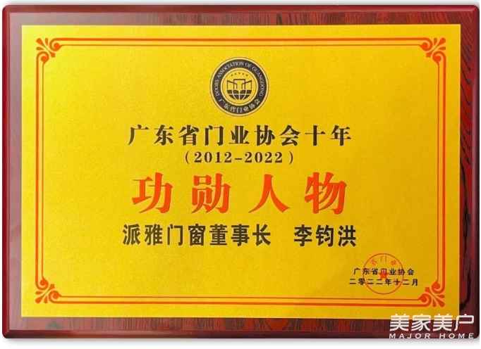 盛典现场,广东省门业协会会长单位、大国品牌派雅门窗荣获“30年门窗科技标杆企业”、门窗行业“领军企业”称号,派雅门窗董事长李钧洪荣获门窗行业“十年功勋人物”奖项,以表彰派雅产品持续引领行业所做出的突出贡献,以及对派雅门窗领袖人物开拓性精神的高度认可。