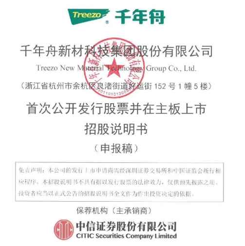 千年舟新材料科技集团股份有限公司(下称“千年舟”)拟登陆深市主板,拟发行不超过 5,065.20 万股,占发行后总股本比例不低于25%,保荐机构为中信证券。