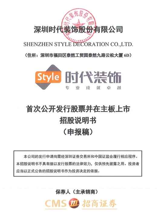 深圳时代装饰股份有限公司(下称“时代装饰”)拟登陆深市主板,本次拟公开发行的股份数量为3,733.21万股,量占发行后公司股份总数的比例不低于25%,保荐机构为招商证券。