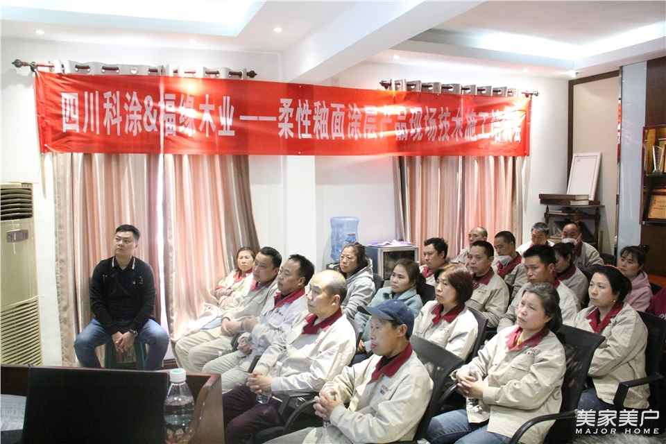 3月9日,四川科涂高分子材料有限公司与福缘木门联合召开“柔性釉面涂层产品现场技术施工”培训会。四川科涂高分子材料有限公司总经理彭小菊,福缘木门总经理赖国建,四川科涂高分子材料有限公司总经办助理王煜、工程师周一粟、服务部经理曹阳以及相关技术人员参加了培训会。
