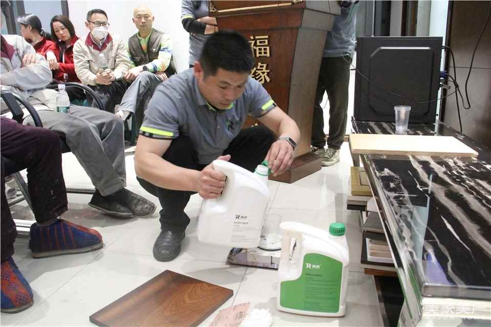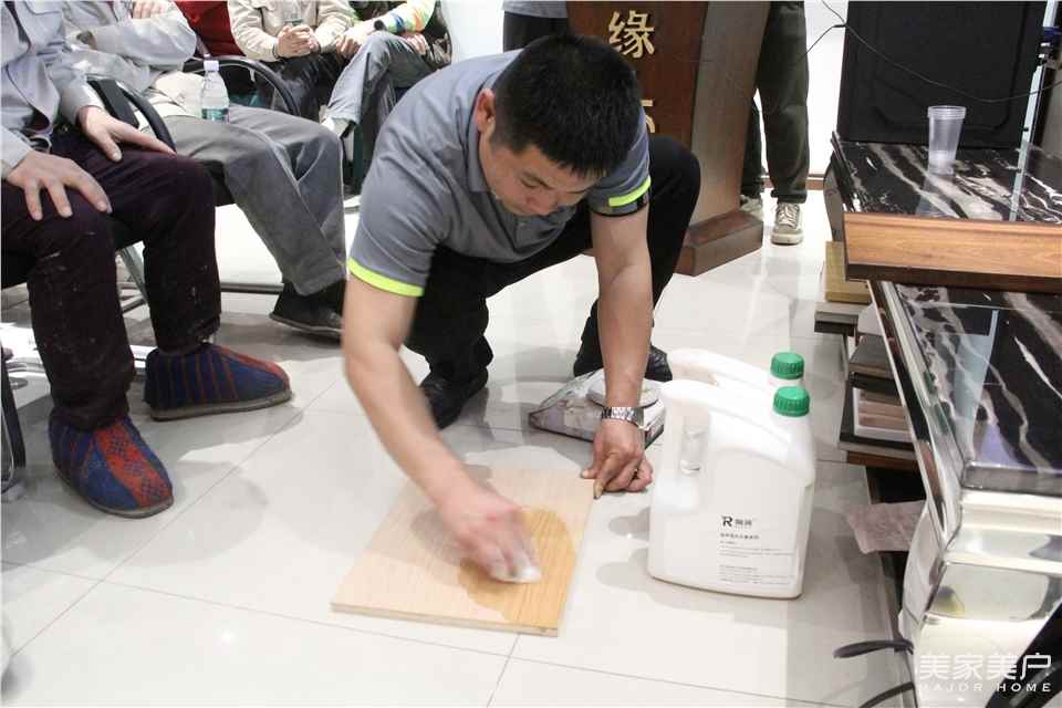 随后,周一粟作了《木器·擦涂施工技术服务》的专题演讲。演讲中,周一粟从擦涂涂层在施工中的应用、施工中注意事项等方面进行了深入浅出的讲解。周一粟表示,经过数千次应用转化测试,“柔性釉面涂层”技术得到不断修正,产品性能得到完善。同时,周一粟运用擦涂涂层的各项参数指标突出科涂高分子材料优异的性能特点,