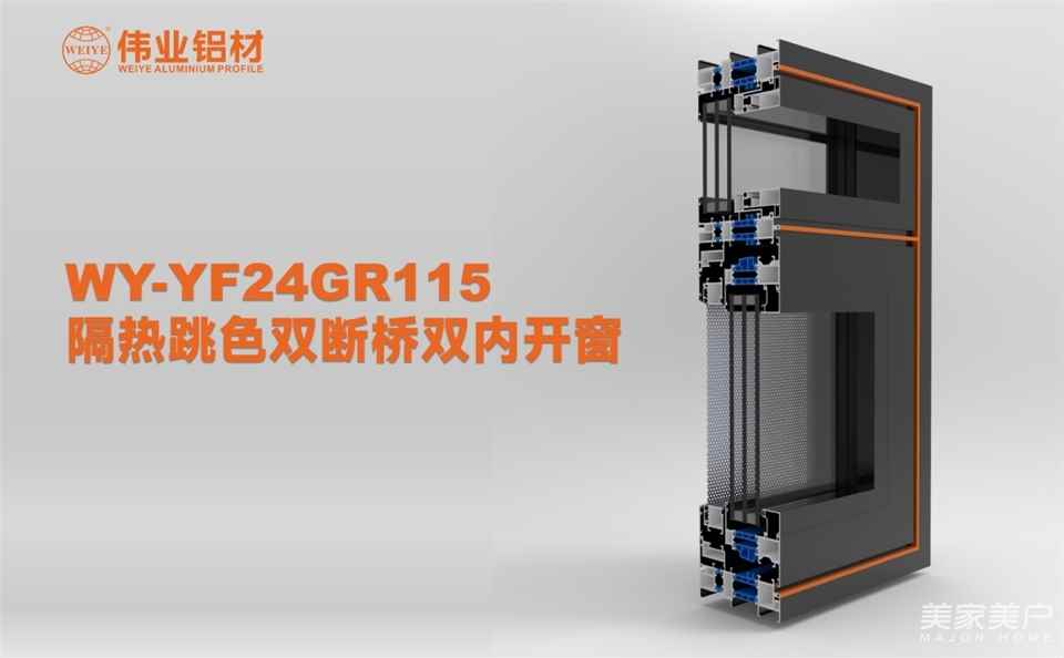伟业铝材不断创新,运用业内领先的铝加工技术与铝建筑系统的设计能力,为用户提供了更加节能高效、舒适健康的商业解决方案。其中WY-YF24GR115隔热跳色双断桥双内开窗,通过高性能型材与系统化设计,有效隔热、保温,提升采光效果,进一步减低建筑的综合能耗。