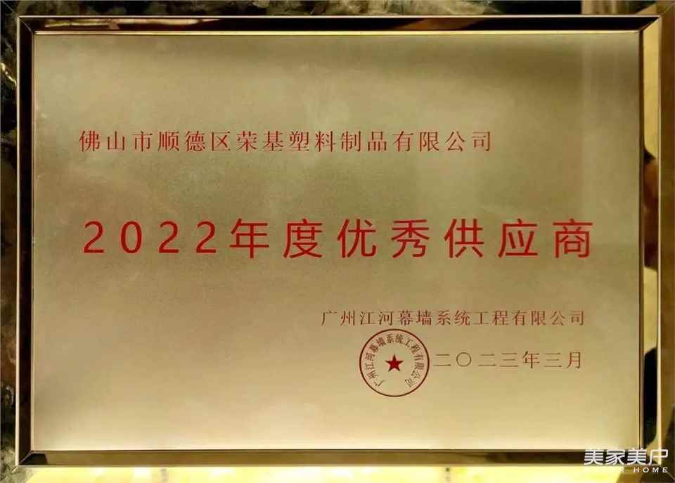 3月10日,江河幕墙2023年供应商答谢晚宴隆重举行。荣基胶条荣获“2022年度优秀供应商”称号。创始人卢碧婵女士领取了荣誉牌。荣基已连续多次获评江河幕墙“优秀供应商”称号。