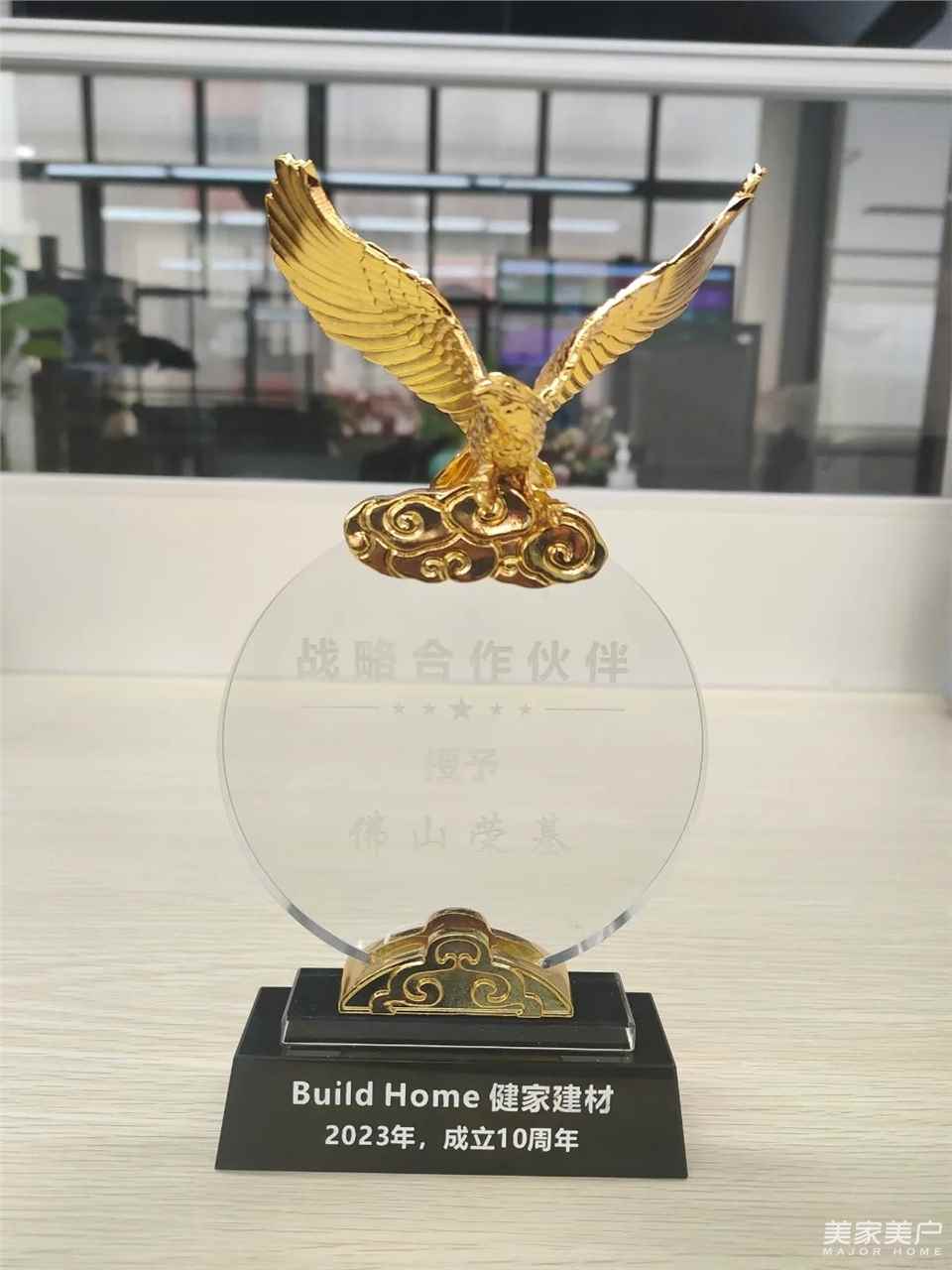健家建材主要生产经营铝合金门、窗、护栏、幕墙、厨柜等产品,集研发设计、生产、安装于一体,产品以外销为主,目前已与澳大利亚主要建筑商SOURCECORP集团建立战略合作伙伴关系,并不断加强与世界各地大型建筑商交流合作。在健家建材近日召开的十周年庆典上,荣基胶条获评健家建材“战略合作伙伴”称号。荣基业务经理曹文波代表公司领取了荣誉牌。