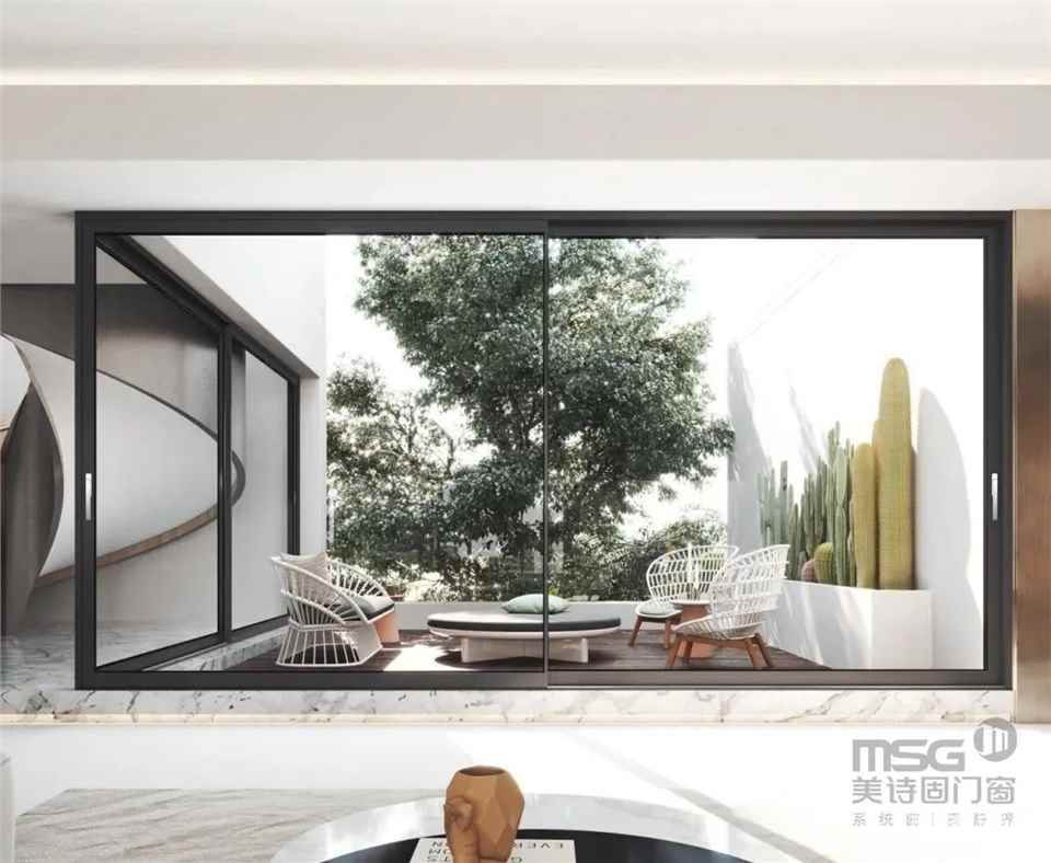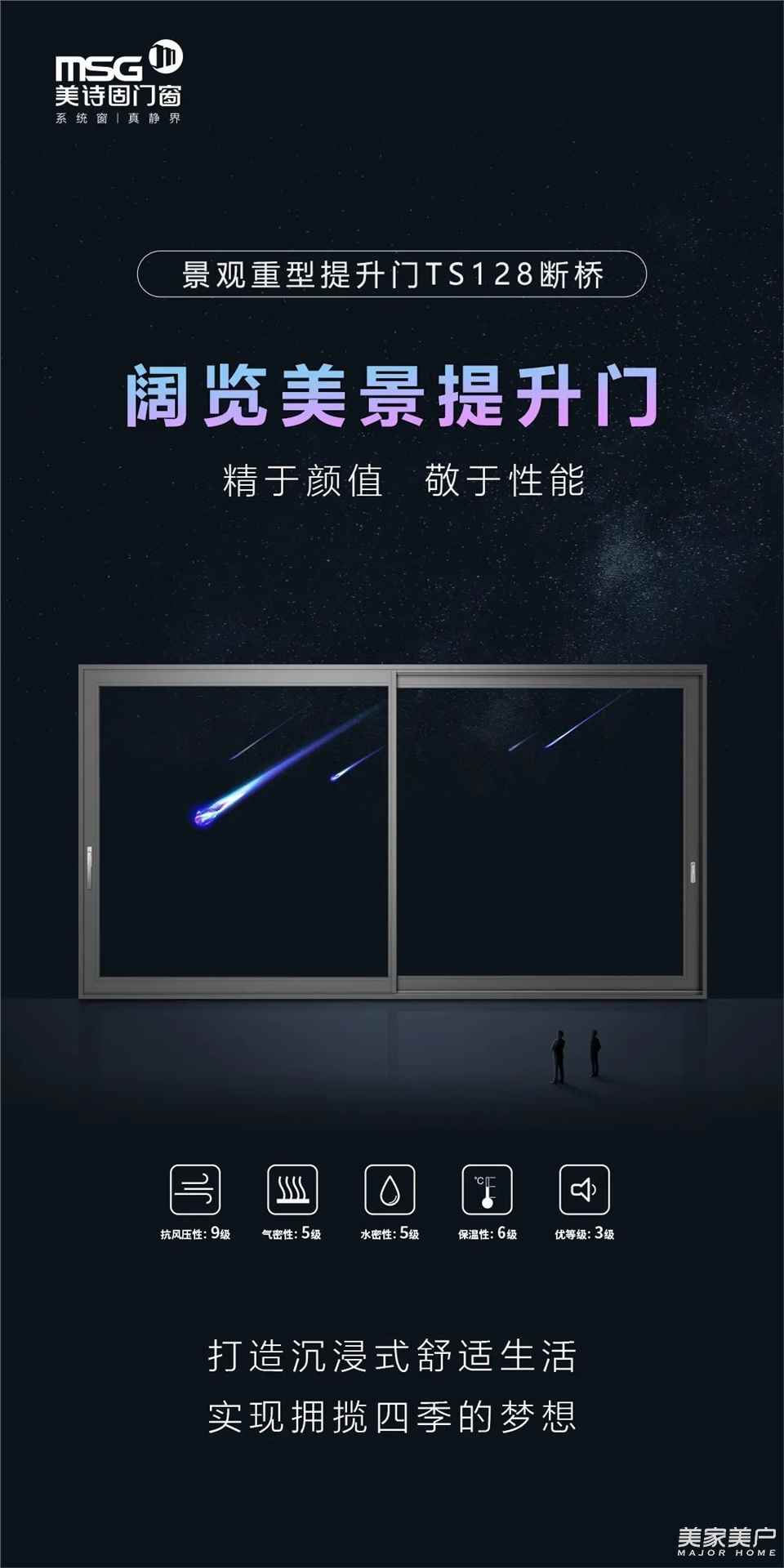 美诗固『景观重型提升推拉门TS128』通过极简主义风格设计、实用功能与创新美学结合、非凡格调、百变搭配、风光无限,门里门外,自成一道风景线~现代建筑美学的精髓尽显无遗,悄无声息地从天地中攫取悦目的自然景观,捕捉光影之美,打造视觉新境,展现纯粹与宁静的生活。