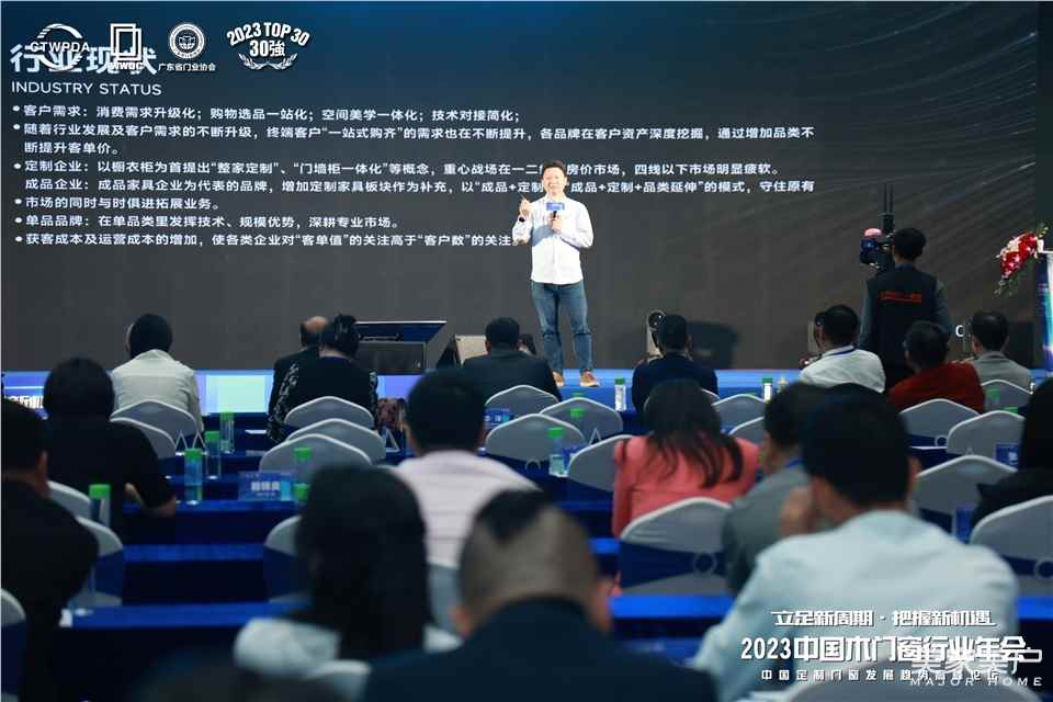 导语:4月26日,由中国木材与木制品流通协会主办、广东省门业协会承办的2023中国木门窗行业年会暨中国定制门窗行业发展高峰论坛隆重召开。活动现场,TATA木门副总裁张岩,带来“门为心,创空间”主题演讲,本文根据演讲内容整理。