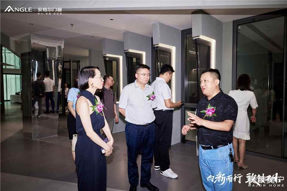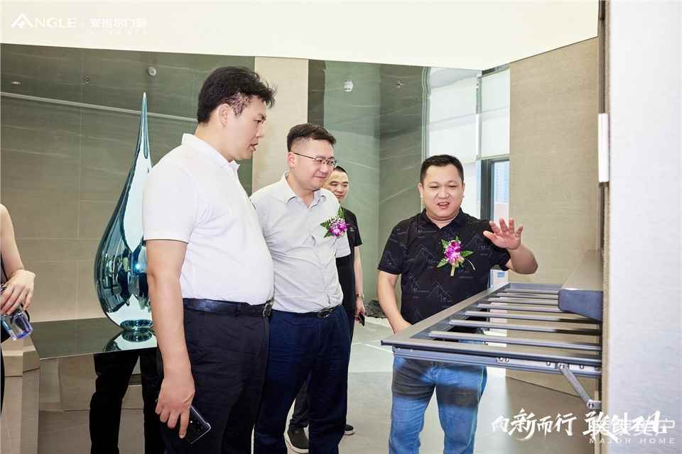 庆典圆满结束,在安格尔领导及工作人员的带领下,大家在营销中心前台进行了合照。随后由安格尔领导及员工的带领下分别参观了营销中心展厅。安格尔讲解员对安格尔的企业文化、产品内容、产品功能与优势进行了详细的介绍。智能化的门窗产品、品质与时尚并存的门窗、时尚现代化的展厅,充分展现了安格尔的品牌实力。