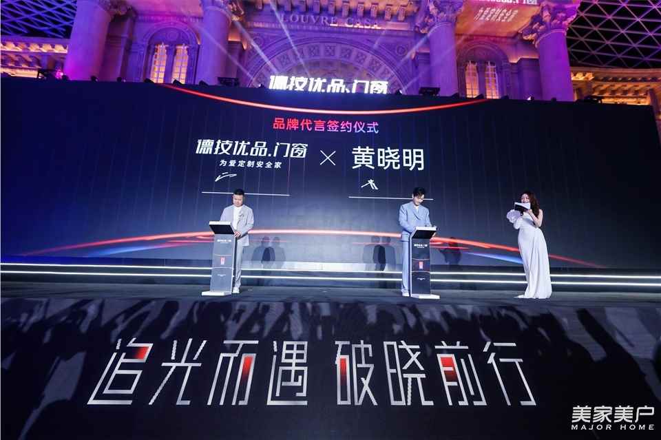 2023年6月16日上午,高端安全系统门窗领潮者——德技优品门窗,2023品牌焕新发布会暨全球经销商战略峰会在佛山隆重举行。本次大会以“追光而遇·破晓前行”为主题,德技优品正式签约“金鸡影帝”黄晓明为新的品牌形象代言人,并发布全新品牌焕新战略规划。