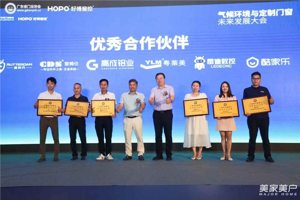 本次活动的成功举办,离不开合作伙伴的大力支持。会议现场,广东省门业协会会长、派雅董事长李钧洪,全国建筑幕墙门窗标准化技术委员会 秘书长王洪涛,共同为获得战略合作伙伴称号的好博窗控、合和建筑五金,以及获得优秀合作伙伴的高成铝业、粵莱美胶条、窗姆仕、鹿特丹、雷德数控、酷家乐颁发了荣誉牌匾。