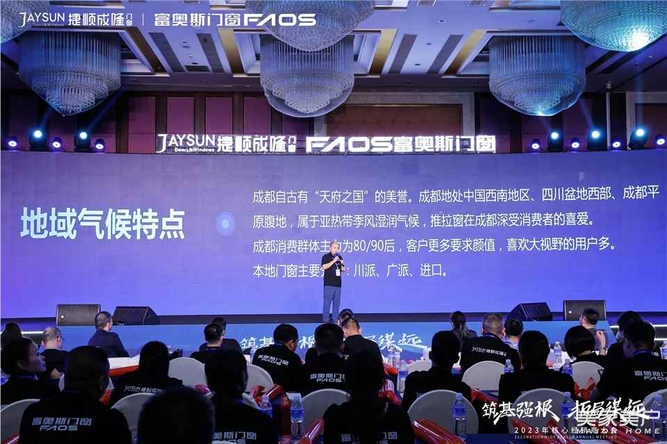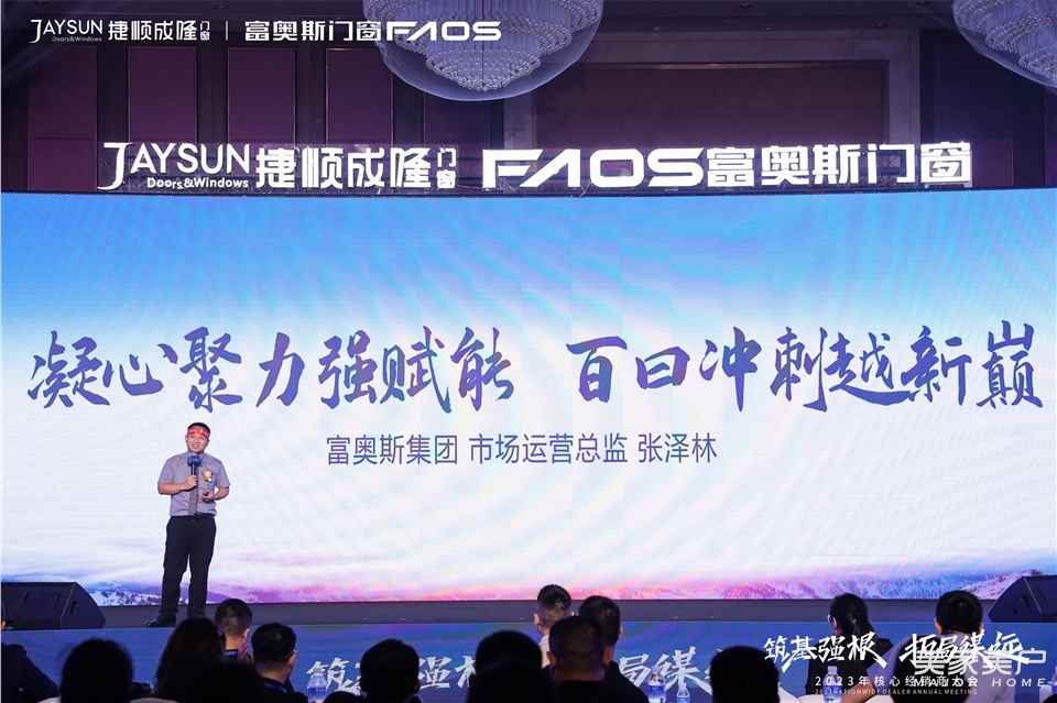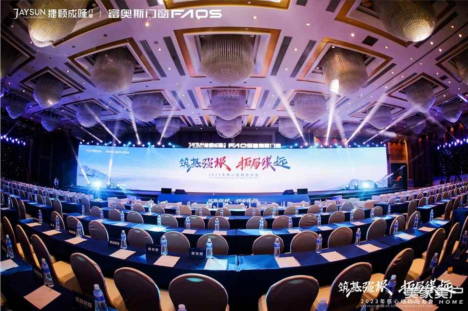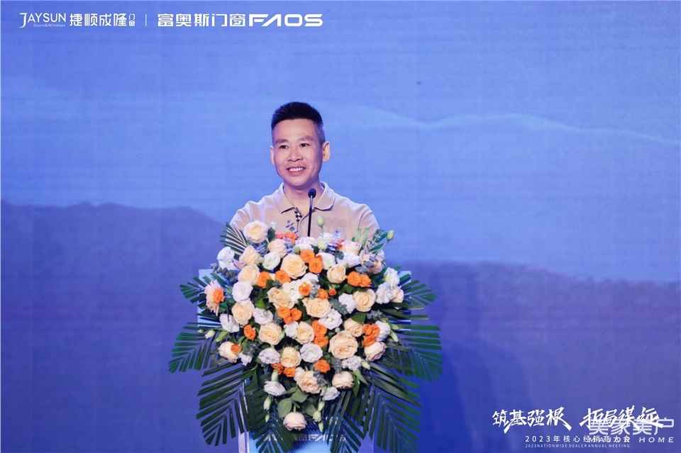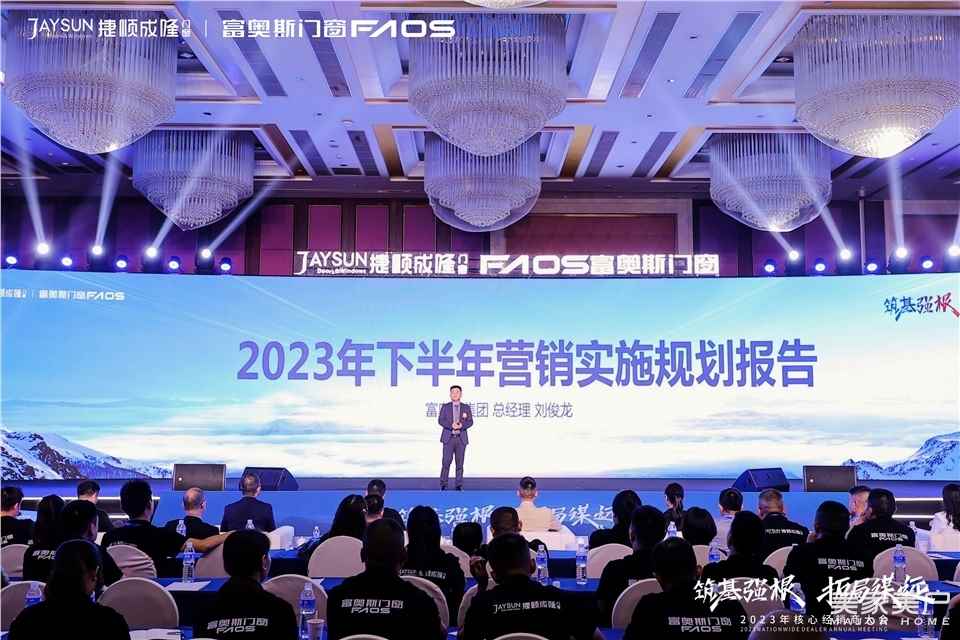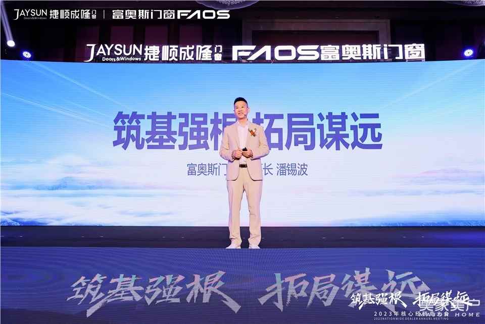 7月7日,富奥斯门窗2023年核心经销商大会在佛山富林朗悦酒店盛大召开。富奥斯门窗董事长潘锡波先生、副董事长贺杰雄先生、总经理刘俊龙先生、营销总监罗聪先生、品牌总监王刚先生、市场运营总监张泽林先生及招商总监刘观石先生等公司领导,全联(全国工商联)房地产商会节能门窗分会执行会长潘慧玲女士、新浪家居门窗行业全国总经理叶玲菊女士、佛山市门窗行业协会秘书长张聪先生等业内大咖,携手富奥斯全国核心经销商及媒体代表共聚一堂,聚焦行业发展趋势,研判品牌战略方向,以“筑基强根·拓局谋远”为大会主题,共同见证荣耀与辉煌,奋楫开启富奥斯门窗高质量发展的崭新篇章!