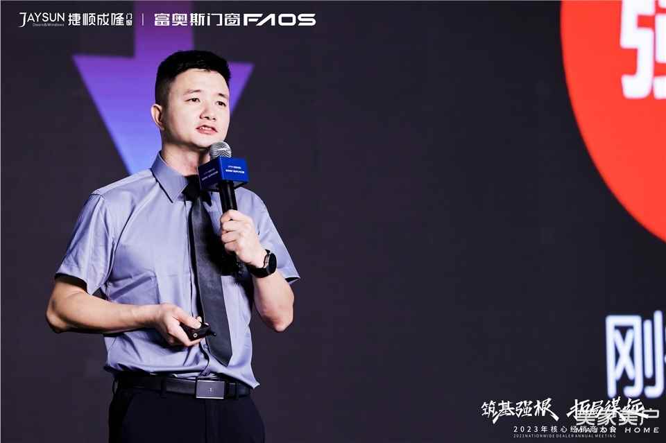 会议伊始,董事长潘锡波先生围绕《筑基强根·拓局谋远》展开主题演讲,他在会上坚定表示,富奥斯的“本”是佛山。自古以来,“佛山制造”就已极负盛名,更是“四大名镇”、“四大聚”之一。富奥斯目标清晰,就是利用好“佛山制造”这一块金字招牌,把品牌做大做强。疫情过后,国门一开,万邦来商。消费信心在回升,中国经济将全面复苏,定制门窗的前景广阔。过去的一年,我们实施了人才战略体系,广纳人才,焕新团队,为提振市场信心、扩大品牌影响力、拓展营销思路等战略方针,实现“不忘本来”与“吸收外来”的结合,更好地“面向未来”。