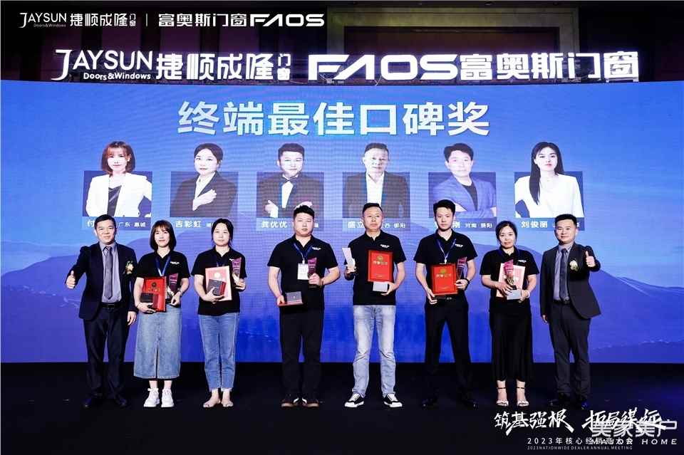 富奥斯门窗取得骄人的成绩,离不开广大经销商的大力支持与信任。在本次经销商表彰盛典上,“十强经销商”、“品牌形象建设奖”、“终端最佳口碑奖”和“新锐奖”四大年度重磅奖项逐一揭晓。榜样力量,追光前行,他们将成为全国经销商的优秀榜样和浪潮中的引领者。