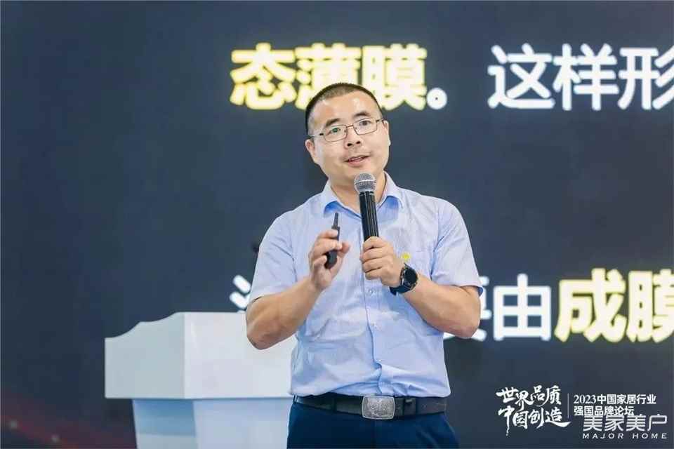 展辰新材营销副总经理杨求贵以《环保涂装高质量发展前景与趋势》为主题进行了分享,他表示环保型涂料逐步取代传统溶剂型涂料已成为不可阻挡的发展趋势,并就《2023中国家具环保涂装升级白皮书》内容进行了解读。