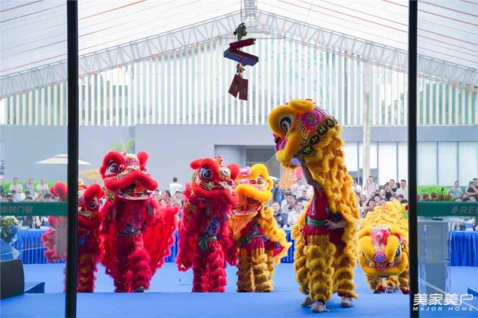 中国陶瓷产业总部基地总经理汤洁明女士则对作为门窗行业领军者、门窗产业链聚合者的红橡树门窗给予高度评价及认可,并期待以本次的开业典礼为开端,谋划竞争力升级,共同开展更多、更具全面化视野的交流与合作,利用好各行业间的优质资源,共同发展、互动互通,共同探索行业高品质、精致个性、新锐品牌的发展之道。全力突破泛家居传统产业边界,打开行业进阶之门!展厅焕新升级,见证荣耀时刻!在汤总致辞后,紧接着进行的是激动人心的剪彩环节,各位嘉宾陆续上台,在全场共同见证下剪彩,在舞狮、礼炮声、掌声中红橡树门窗全球新营销总部及全新展厅正式投入使用,也预示着红橡树门窗生意蒸蒸日上。