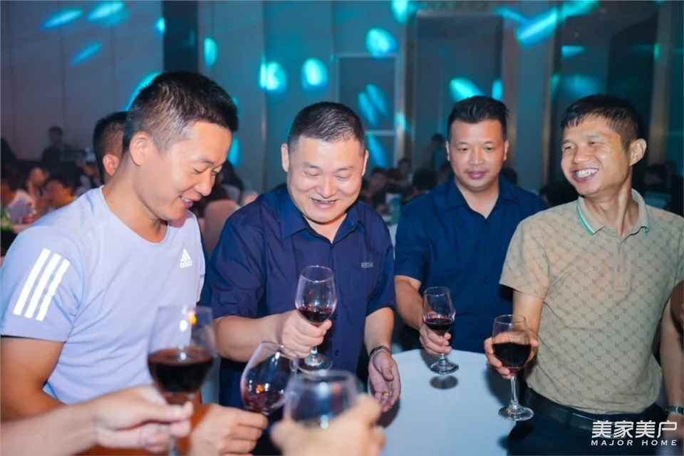 晚宴现场,嘉宾们盛装出席,面带笑容,迈着最自信的步伐,迎接他们的荣耀时刻。红橡树门窗领导们及核心团队一起到台上祝酒,感谢每一位红橡树门窗经销商家人们的一路相伴,用真心和激情共同开启了品牌全新篇章。