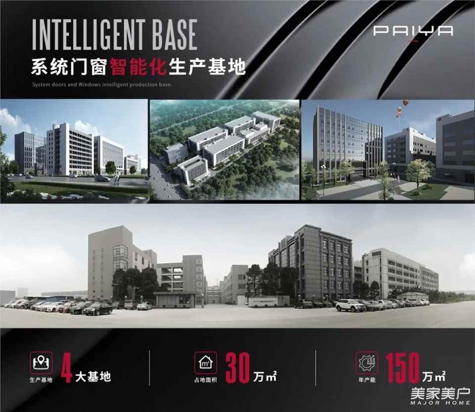 现如今,派雅已拥有4大生产智造基地,占地30万㎡,年产能可达150万㎡,成为系统门窗智能化生产基地的标杆。