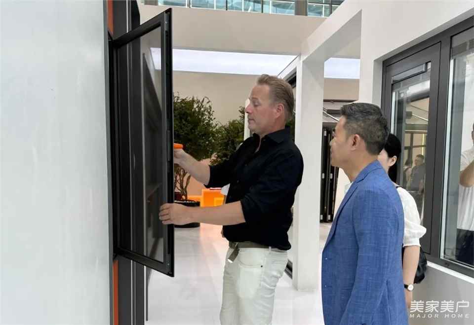 期间,德国HOPPE好博董事会成员、亚太区总裁 Eric Kersten亦前来百利玛展馆参观交流,黄董与各领导嘉宾深度探讨门窗发展新趋势,为其介绍多款新品的特点与性能,他们对百利玛至简新奢的展馆设计、精湛卓越的产品工艺表示高度的赞许。