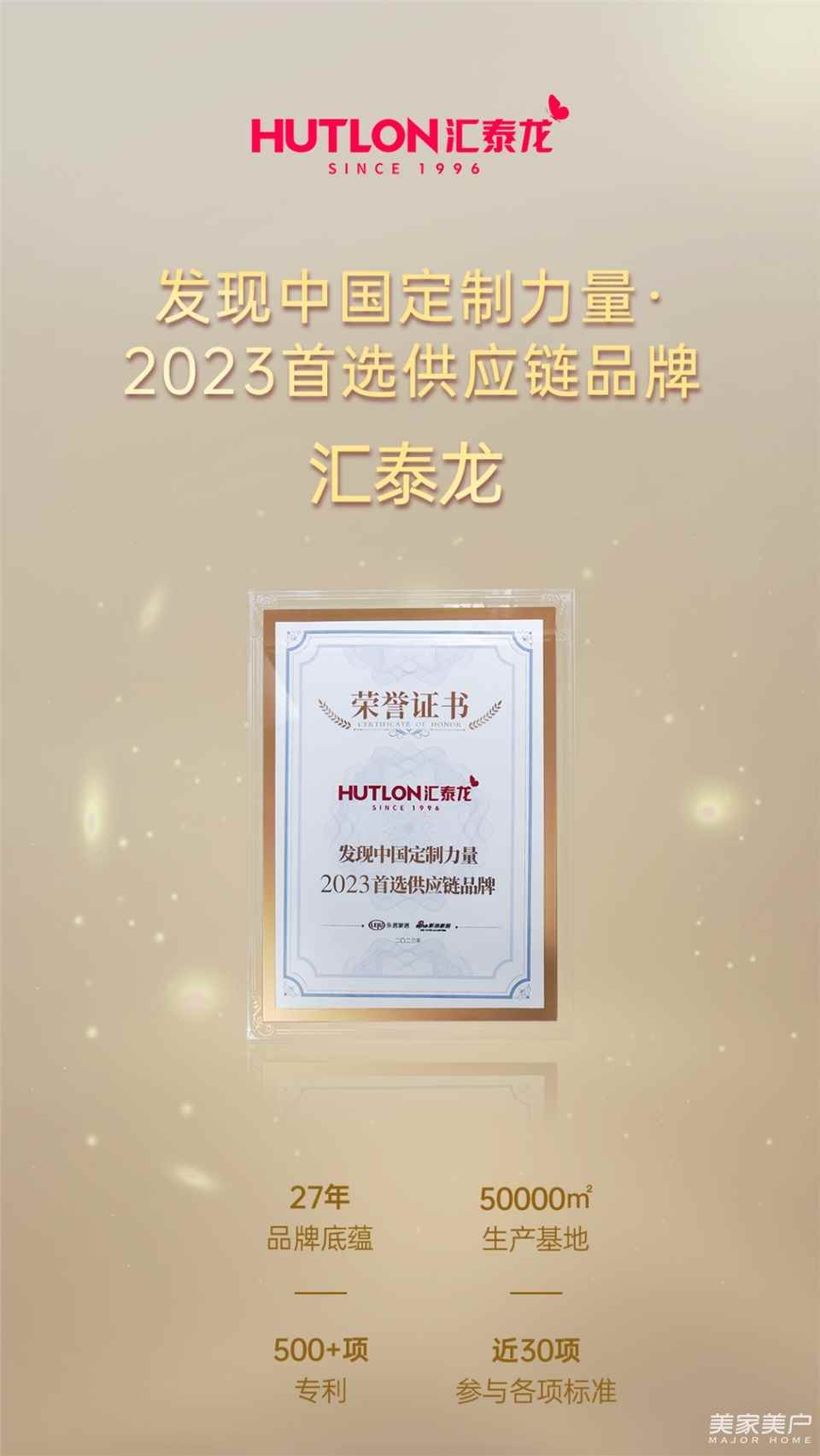 "发现中国定制力量·2023首选供应链品牌",是定制行业对汇泰龙及全屋五金产品的高度认可,也是汇泰龙实力的见证!