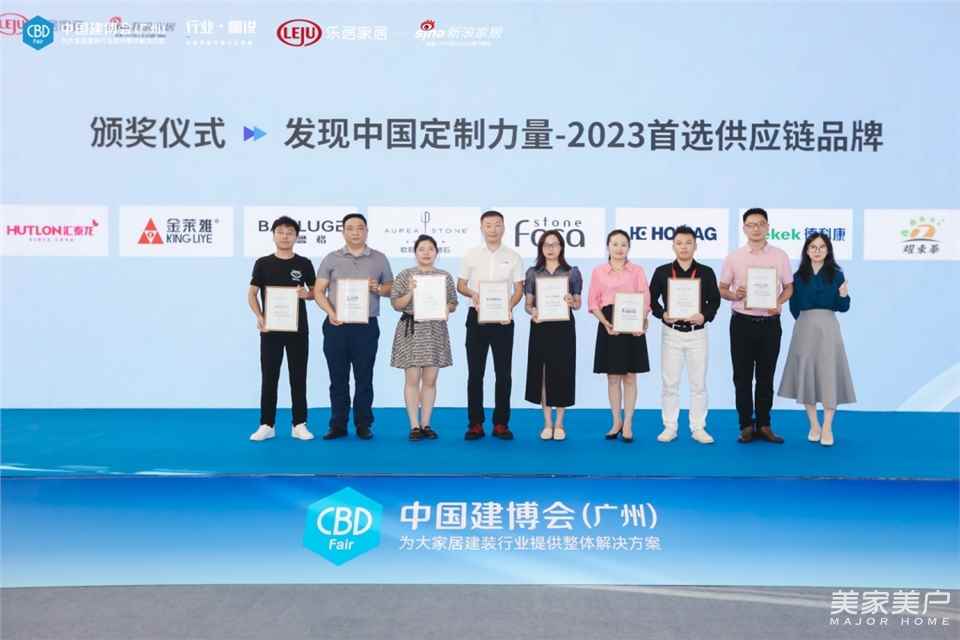 7月8日—9日,建博会上,汇泰龙喜讯连连,再获“发现中国定制力量·2023首选供应链品牌”。