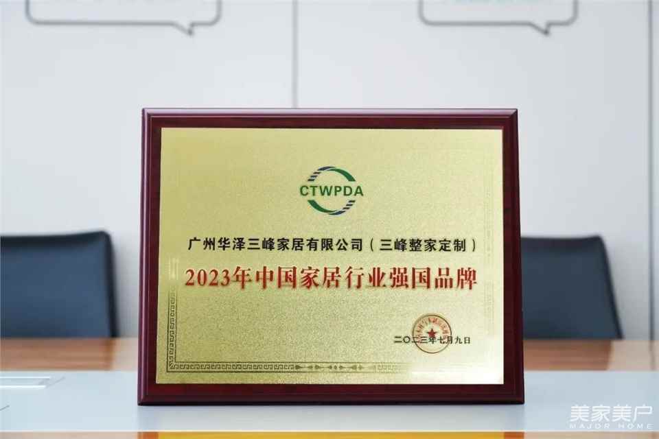 ▲三峰整家定制获得『2023年中国家居行业强国品牌』殊荣