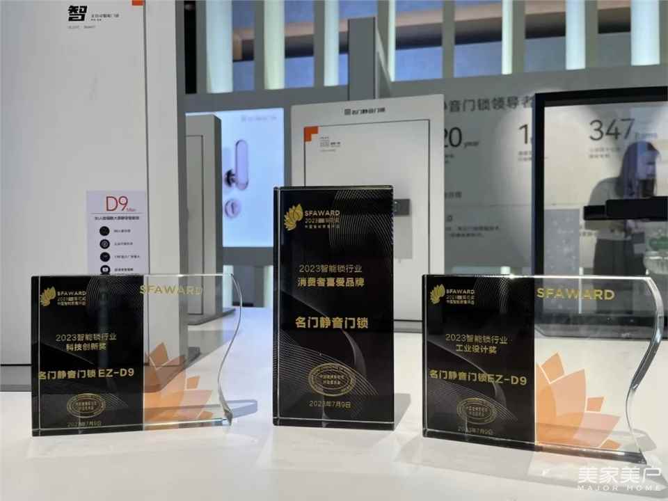 名门一举包揽葵花奖:「2023智能锁行业消费者喜爱品牌奖——名门静音门锁」、「2023智能锁行业科技创新奖——名门静音门锁EZ-D9」、「2023智能锁行业工业设计奖——名门静音门锁EZ-D9」三大重磅奖项!