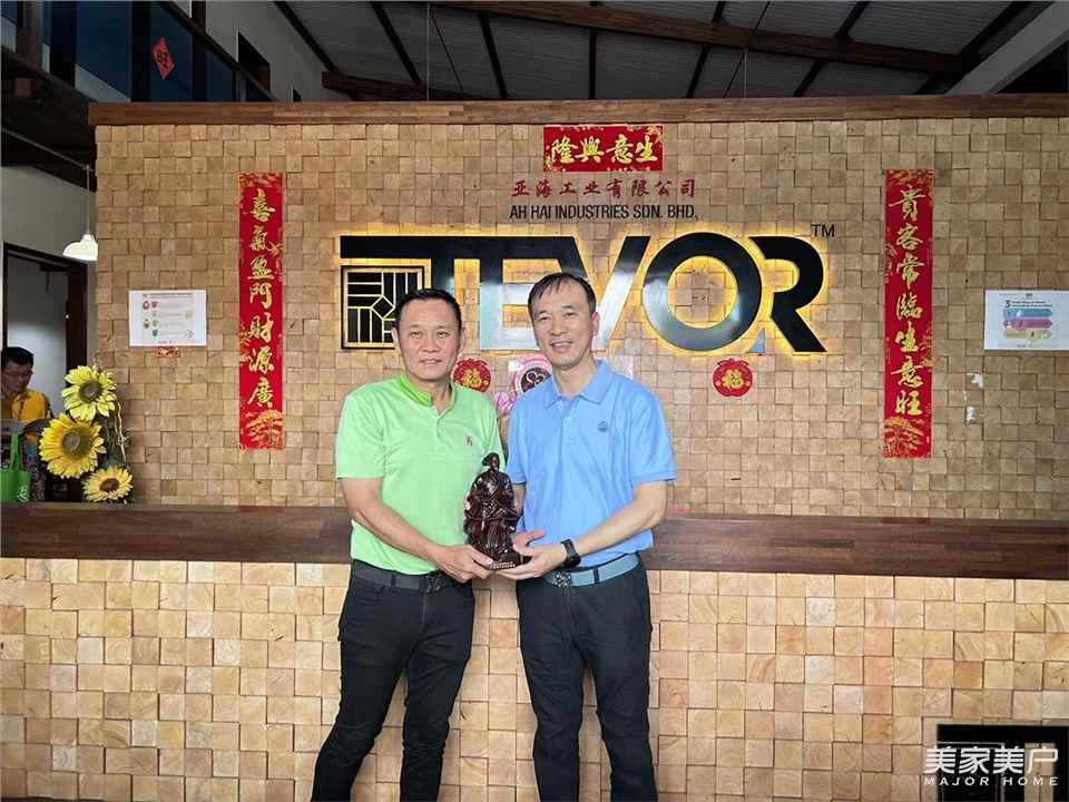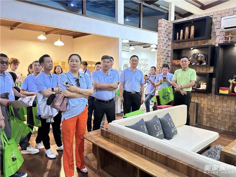 22日上午,在马来西亚峇株吧辖家具同业公会长林喜长陪同下,广东省门业协会会长李钧洪等领导考察团一行来到马来西亚峇株吧辖家具同业公会会长单位、马来西亚亚海工业有限公司,走进生产车间,实地参观了其生产车间和展厅。