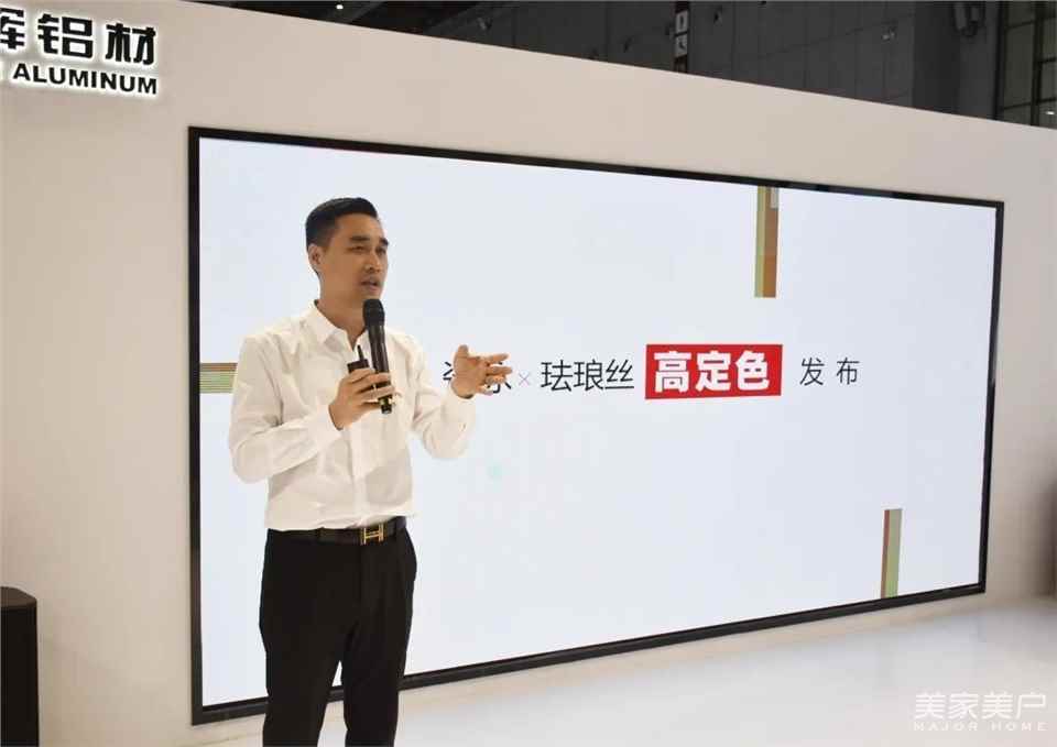 英辉铝业深刻洞察消费者在家居色彩的偏好,向内挖掘用户色彩情绪,在会上隆重推出瓷泳X珐琅丝高定色系列。在《瓷泳X珐琅丝高定色发布》主题演讲中,英辉铝业副总经理叶广智对“瓷泳极光灰、瓷泳钛空灰、珐琅丝银河灰”进行解说。