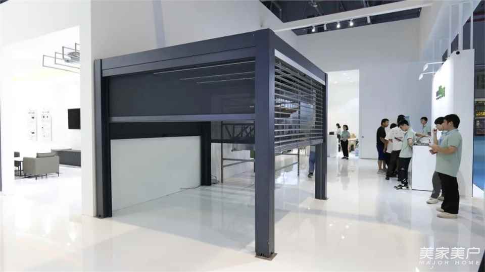 近年,和亲朋好友一起亲近大自然,享受惬意的户外休闲时光,成为人们越来越追捧的生活方式。合和精心研发,在本次展会上,通过搭建遮阳凉亭,我们在凉亭的四个立面分别搭配了两套电动防风卷帘、一套CR80电动户外大百叶帘,一套手拉防风卷帘,顶部搭配梭形百叶(电动翻板百叶),合和致力于全面高效为客户提供多种外遮阳系统解决方案,匠心守护高端户外品质生活。
