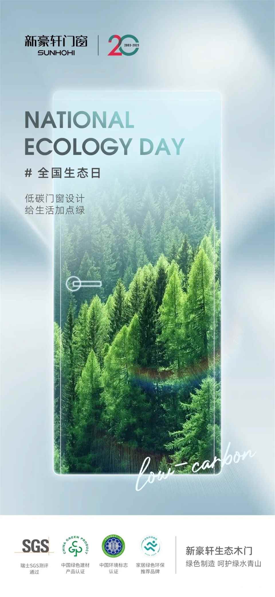 2023年8月15日,是我国首个全国生态日,今年的主题为“绿水青山就是金山银山”。门窗作为建筑的重要组成部分,在实现节能、低碳和绿色环保方面有着重要作用,是构筑绿色生态家居的关键,装一扇品质门窗,守一方绿水青山。