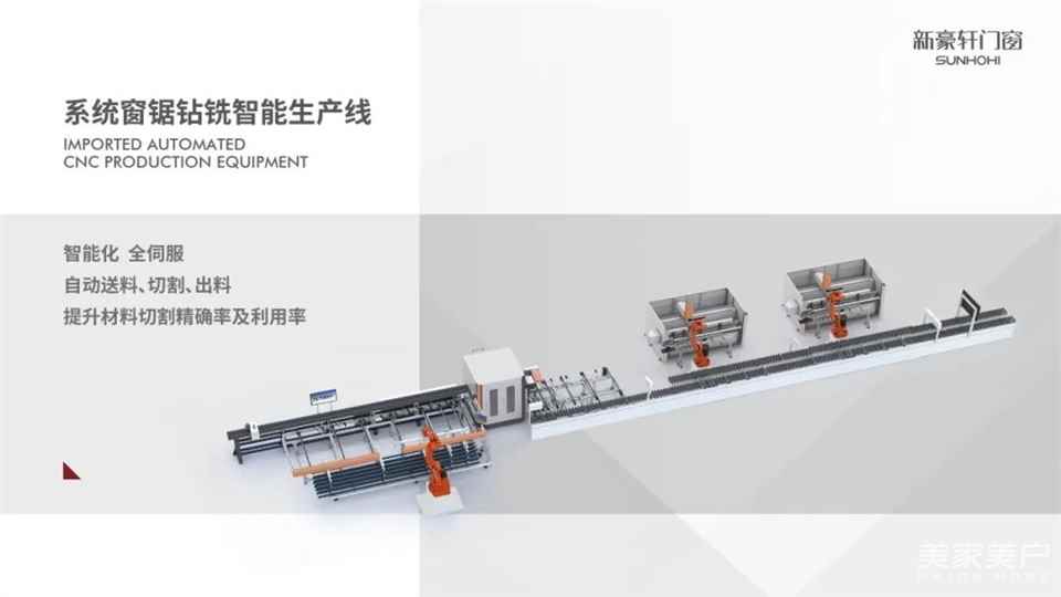 同时,引进「锯钻铣智能生产线」,以全伺服送料系统,节省5%材料损耗,进一步提高型材利用率,减少生产过程的材料浪费,并自动完成剩余材料的回收利用流程,实现生产零尾料。