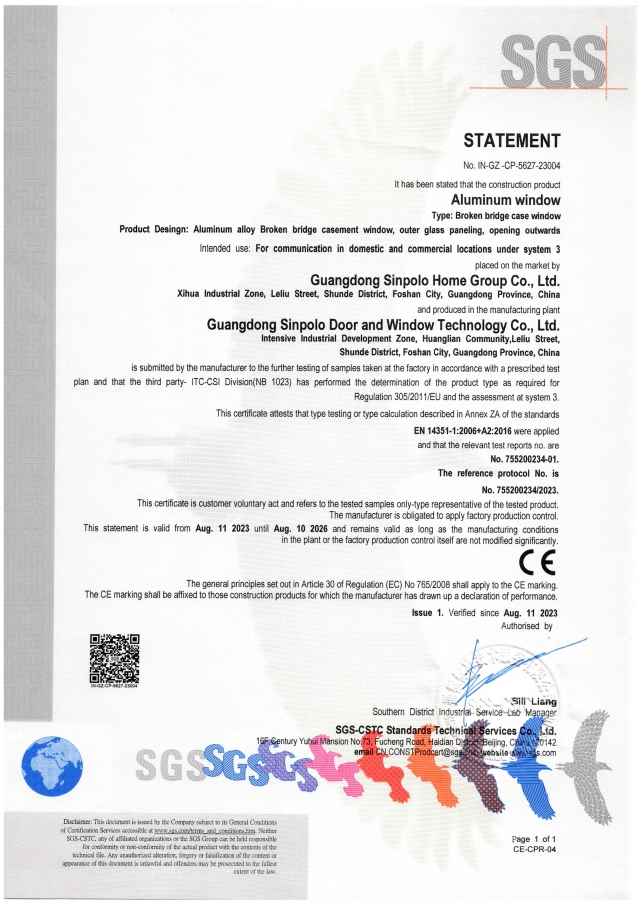 门窗CE认证参考的测试项目包括了水密性、气密性、抗风压、扣紧装置的安全性能等多项测试验证,标志着圣堡罗产品质量过硬,符合国际要求,产品达到欧盟指令规定的安全要求。