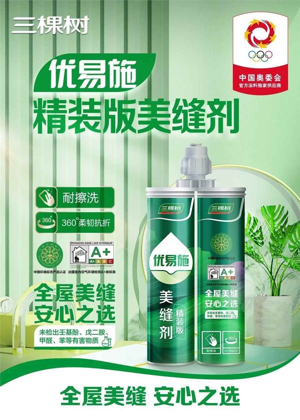 优易施精装美缝剂新品通过绿色十环认证,法国A+,进一步证明其在室内空气质量方面的优越表现。以实际行动向世界宣告,环保不仅是一种趋势,更是三棵树对未来的承诺。