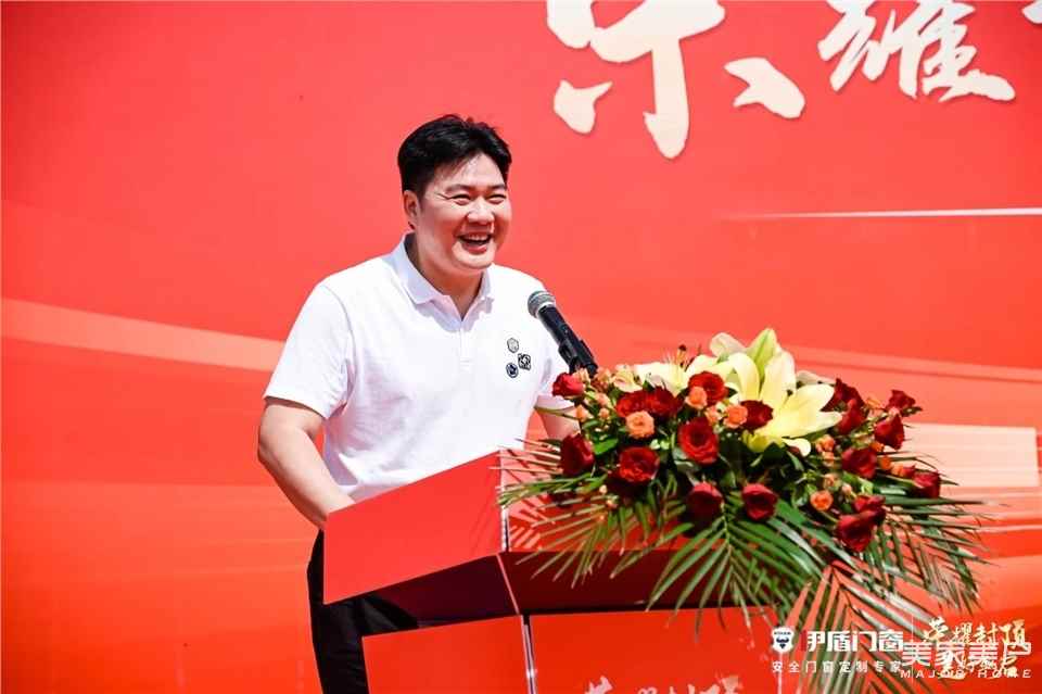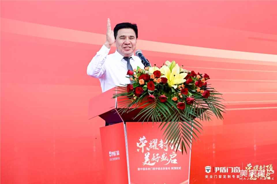 伊盾门窗董事长张龙伟在开场致辞中对政府领导及陪伴伊盾一路走来的经销商表达了诚挚感谢,对施工人员表示了诚挚的慰问,回顾了伊盾门窗14年来取得的阶段性成绩,高度阐述了总部基地封顶的战略价值及未来规划。