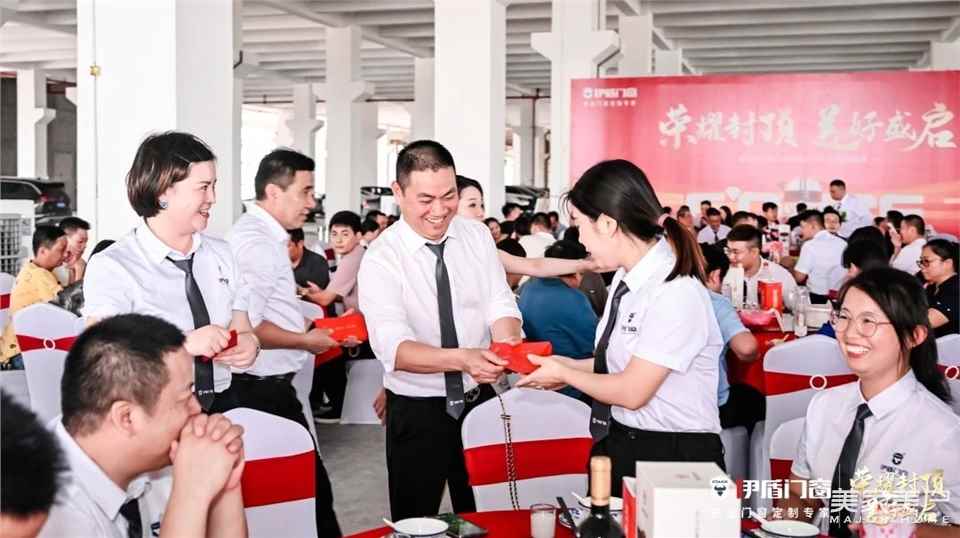 封顶仪式结束后,伊盾门窗举办了答谢午宴,为前来支持伊盾门窗的各界朋友送上了答谢红包及礼品,传递封顶之喜。本次封顶仪式也在喜气洋洋的氛围中圆满落下了帷幕。