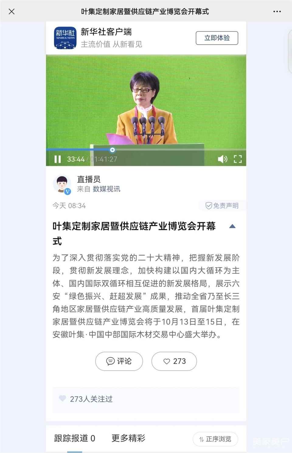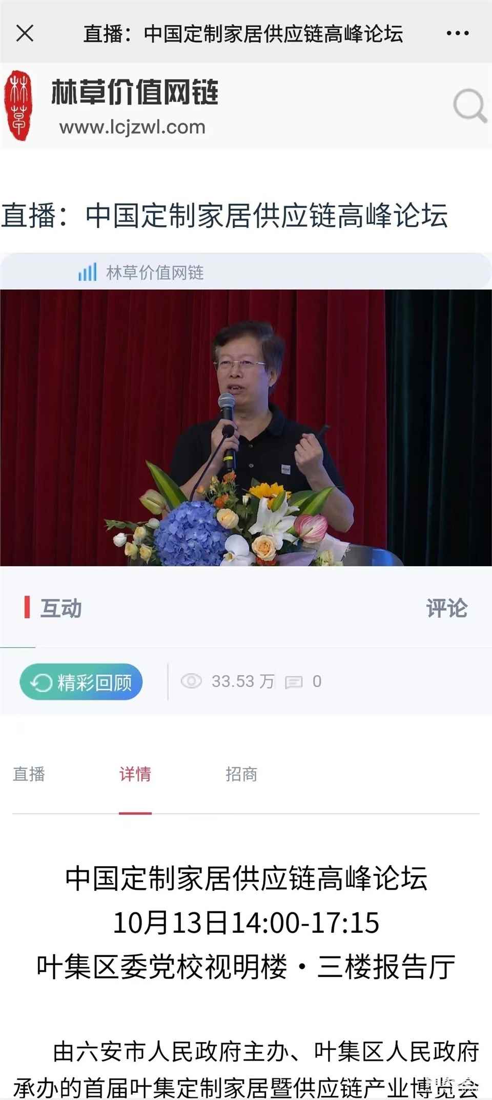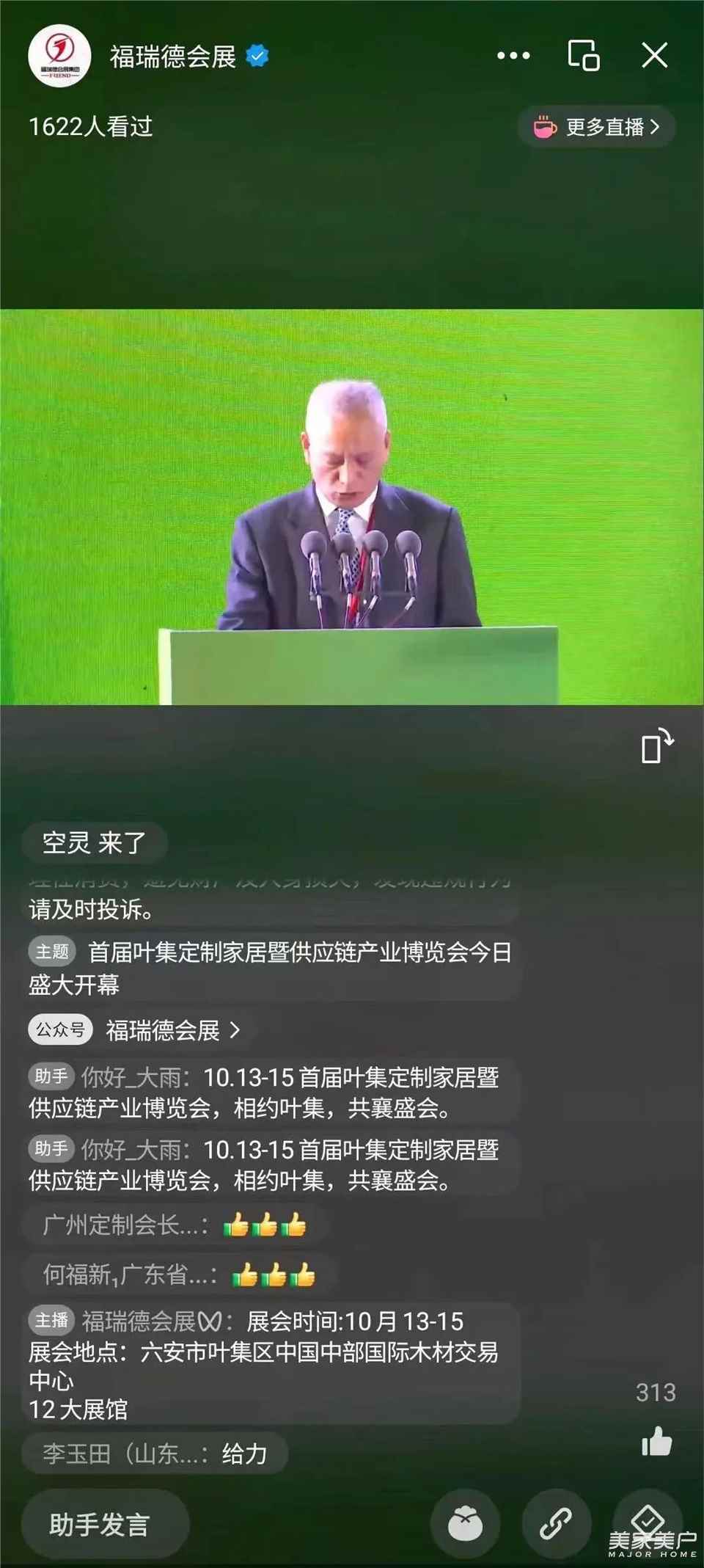 六安市委常委、副市长苏曼,六安市叶集区委副书记、区长郑武军,中国木材与木制品流通协会会长李佳峰,大自然家居执行董事、副总裁佘建彬,全国工商联家具装饰业商会秘书长张仁江,安徽省商务厅副厅长黄英先后发表致辞。安徽省政协副主席李和平宣布首届叶集定制家居暨供应链产业博览会开幕。