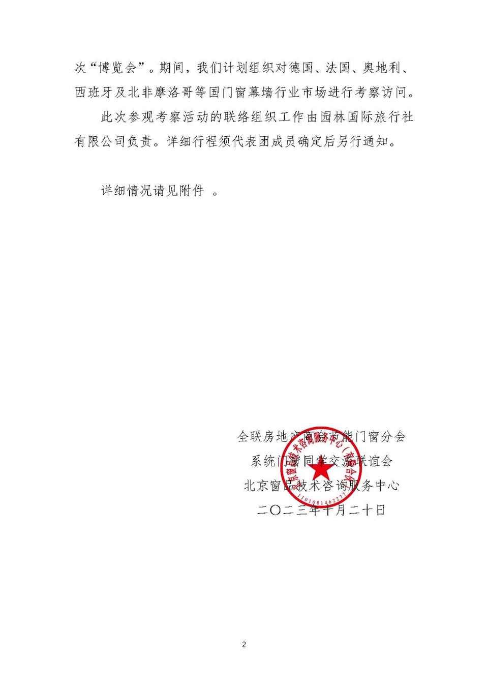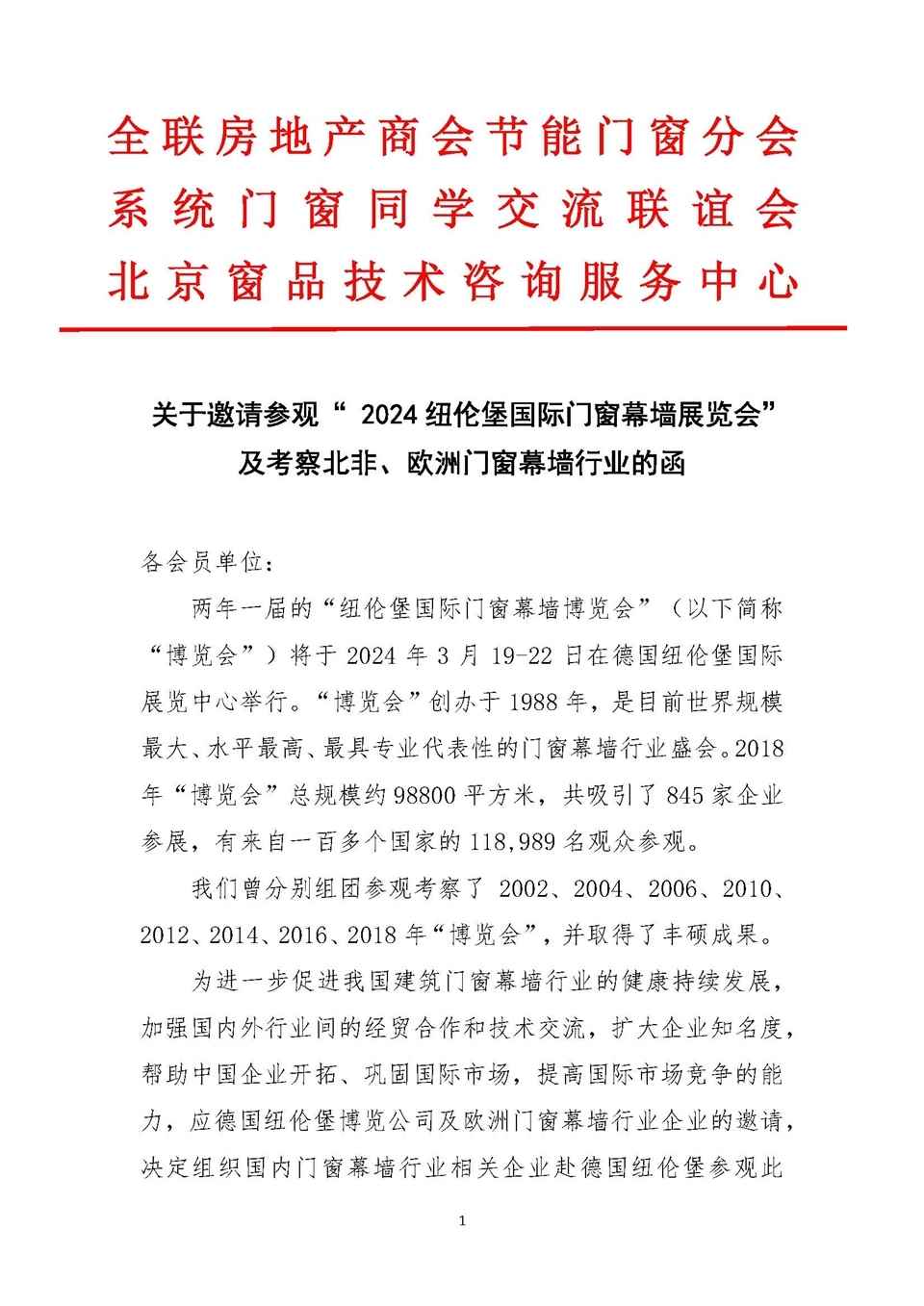 关于参观“2024年纽伦堡国际门窗幕墙展览会” 及考察北非、欧洲门窗幕墙行业的相关事宜