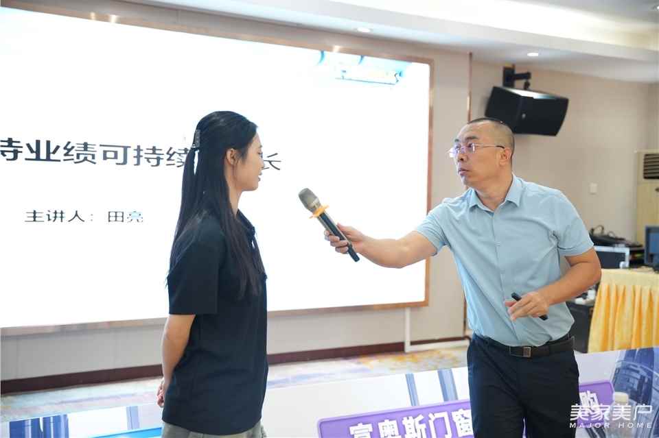 富奥斯门窗营销导师麦老师立足富奥斯门窗的产品价值出发,深入浅出地讲解了富奥斯目前的产品架构,剖析了工艺的优势所在,分享了终端的介绍话术,为全面赢战双十一大促鸣锣开道。