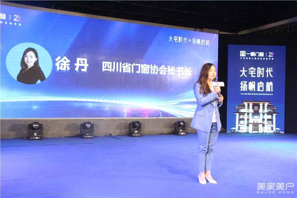接着,四川省门窗行业协会秘书长徐丹发言。发言中,徐丹对一帆门窗近年来取得的各项成绩表示了充分肯定与赞扬,寄语一帆门窗在未来的发展道路上百尺竿头更进一步,祝贺本次活动取得圆满成功。同时,徐丹在发言中作了《如何赋能品牌企业可持续健康发展》的专题演讲。演讲中,徐丹为大家分析了行业目前的现状与今后的走势,鼓励大家克服困难,以饱满的精神热情继续耕耘行业的热土,实现再攀高峰的宏伟目标。