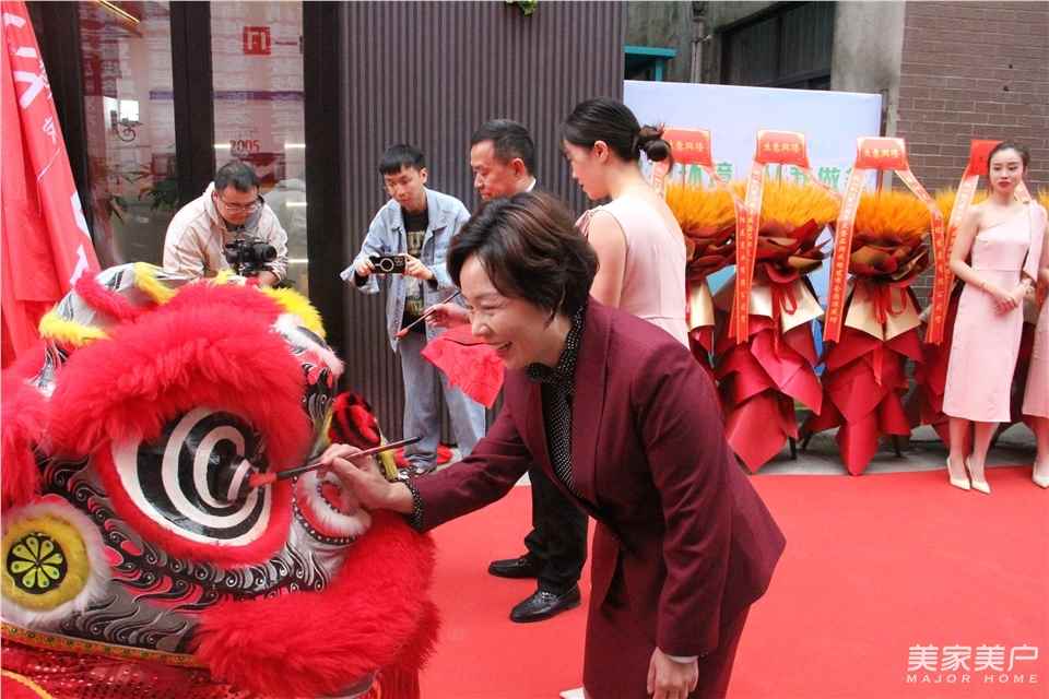 一帆门窗董事长王勇、总经理杨申蓉共同为代表吉祥的雄狮点睛