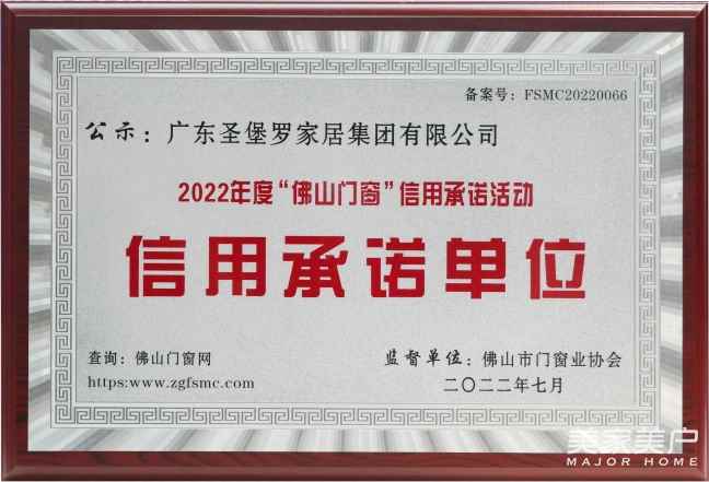 在诚信经营方面,吴董始终把社会信誉、品牌口碑摆在重要位置,带领圣堡罗接连摘获“家居绿色环保推荐品牌”、“年度家居行业服务榜样”、 “信用承诺单位”、“消费者信赖十大家居品牌”、“2023中国家居消费者口碑品牌”、“2023年度家居行业服务榜样”等荣誉。