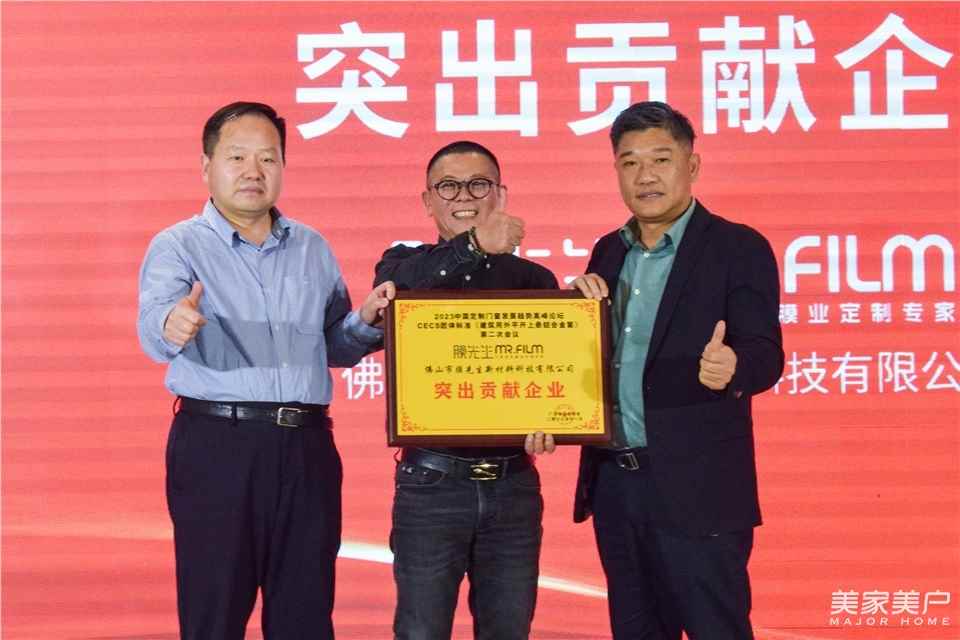 随后,中国工程建设标准化协会建筑幕墙门窗专委会秘书长刘会涛、广东省门业协会会长、派雅门窗董事长李钧洪共同为膜先生颁发了“突出贡献企业”荣誉牌匾。