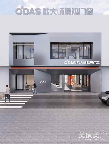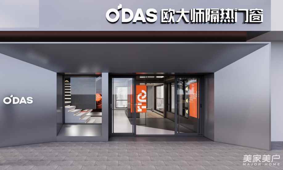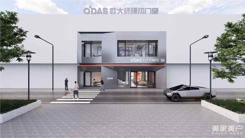 欧大师隔热门窗高安专卖店外立面极具视觉冲击性,银色铝板将气势感、仪式感完美进行呈现,象征着欧大师隔热门窗产品对航空航天技术的应用,为整个外部设计增添几分科技感与神秘感。