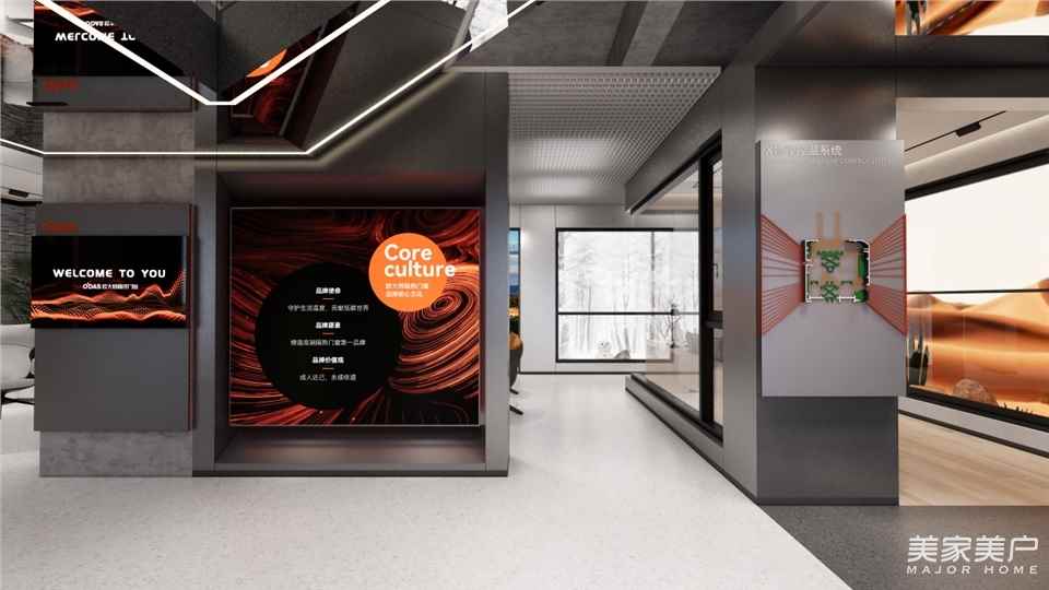 步入店内,欧大师隔热门窗文化墙映入眼帘。结合先进展示技术,让业主深入了解品牌的创新产品和设计理念,为业主提供一个启发和创造的环境。