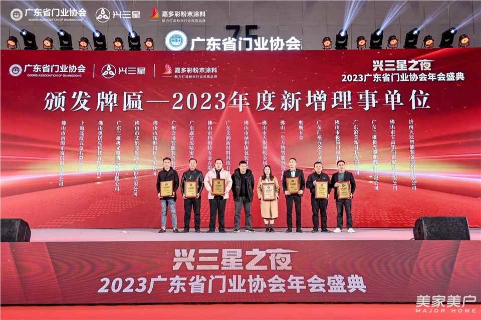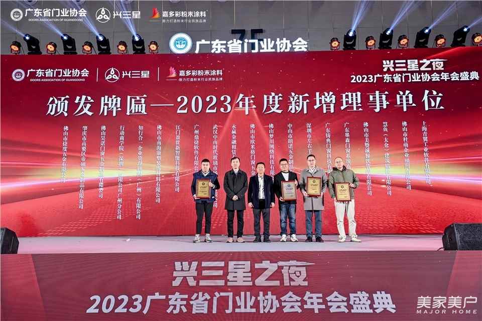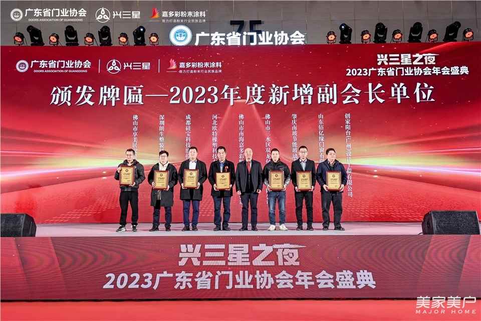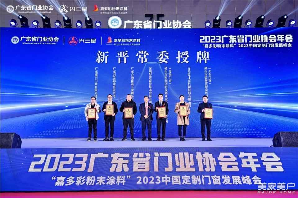 2023年,广东省门业协会迎来新的发展。年会现场为新加入常委单位——广东雍兴门业有限公司(帝奥斯门窗)、广东兴发铝业有限公司、广东合和建筑五金制品有限公司、深圳好博窗控技术股份有限公司、佛山市南海区时代辉业家居制品有限公司(尊尚门窗)、青岛德才高科新材料有限公司、佛山市德斯莱斯家居科技有限公司(正金门窗)7位新常委颁发了荣誉证书。截止目前,广东省门业协会常委会已拓展至55名成员。
