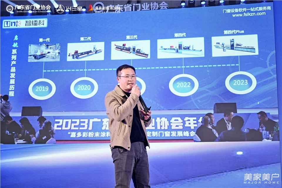 镭科营销总监孙树涛,介绍了其新品“启航系列门窗激光智能一体机”。该产品具有效率快、稳定好、性价比高的优势,有助于门窗企业降低生产成本和提升产品品质。