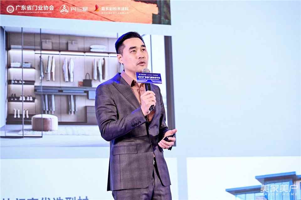 广东省门业协会执行会长、东威利总经理叶广柱,在演讲中,介绍了整木定制行业的发展和趋势。在东威利70年发展中,经历了四次产品的迭代,也见证了木制品行业的发展。当前的市场竞争,更多考察的是企业的整合能力,包括供应链、渠道、产品等。