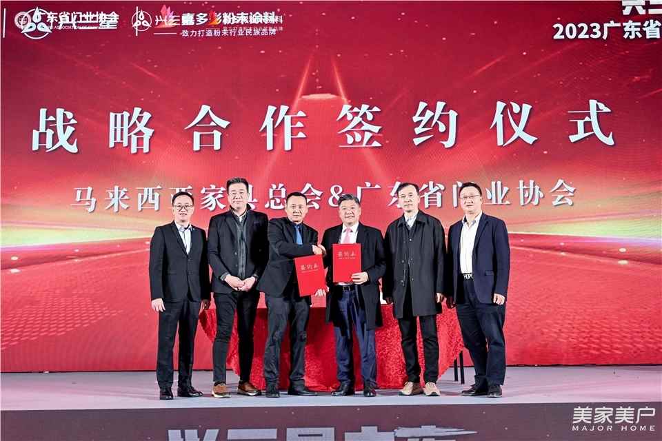晚宴现场,马来西亚家具总会与广东省门业协会签署战略合作协议,并互赠礼品。未来,两大协会将在门窗行业领域,展开深入的合作与交流,为门业的发展带来新的机遇。