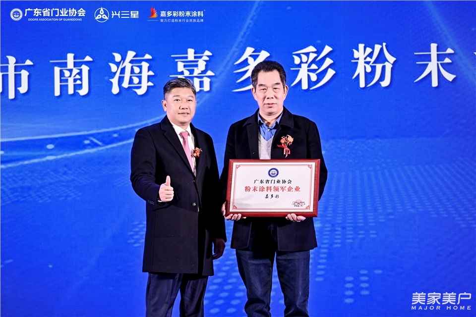 在这次年会上,广东省门业协会为推动行业发展做出突出贡献的企业颁发了荣誉。嘉多彩粉末涂料凭借领先的技术领先和强大制造实力,荣获“粉末涂料领军企业”、“金牌战略合作伙伴”、“创新企业”等多项荣誉。这些大奖的获得充分凸显出嘉多彩粉末涂料对门窗行业的赋能作用。